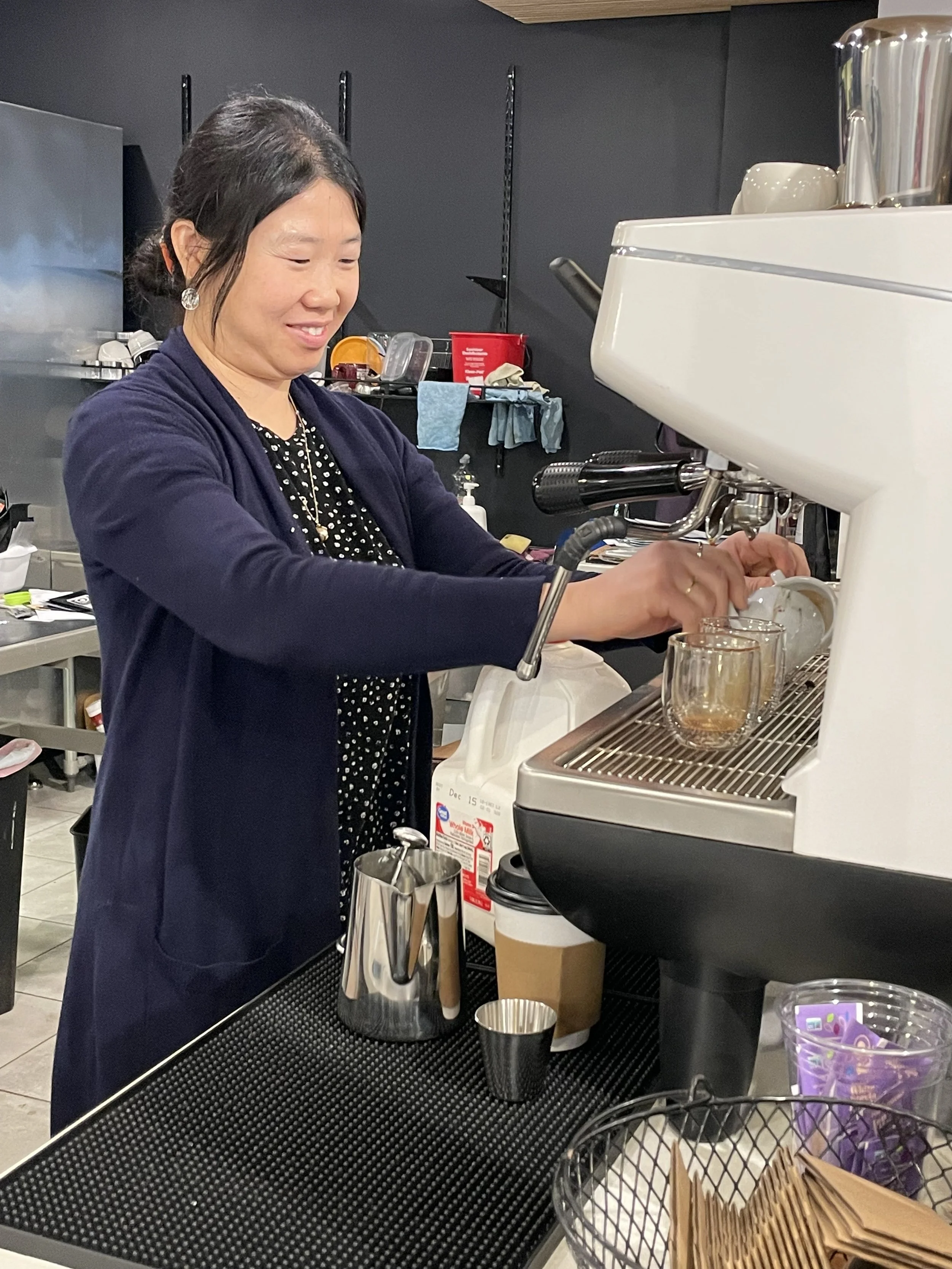 Jinyoung Fekete runs the popular spot Owl Eye Coffee Roasters in Cadillac with husband Aaron.