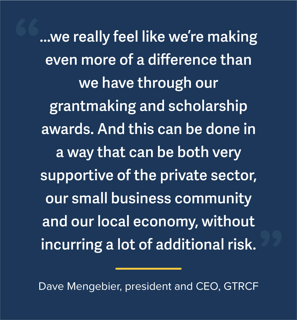 “Community foundations, in grantmaking, can only grant to municipal governments, nonprofits, educational institutions and tribes. And so the question is, what about the private sector, and particularly the small business community, which is absolutely central to the overall economic health of our region,” said Dave Mengebier, president and CEO of the foundation, or GTRCF.